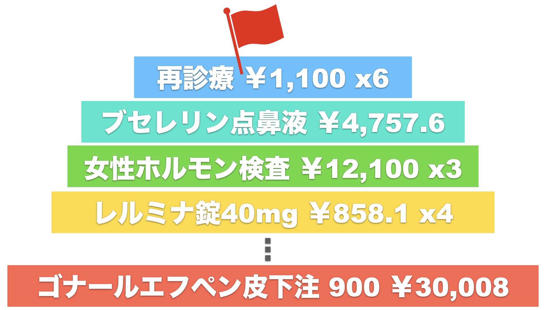 私が卵子凍結前までに受けた、薬剤・診療行為を、積みあげ方式で計算してみました。そもそも自由診療なので、診療行為の価格はクリニックによって異なると思いますが、参考になれば幸いです。